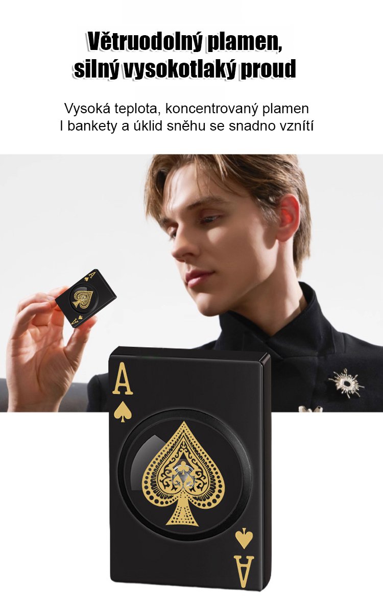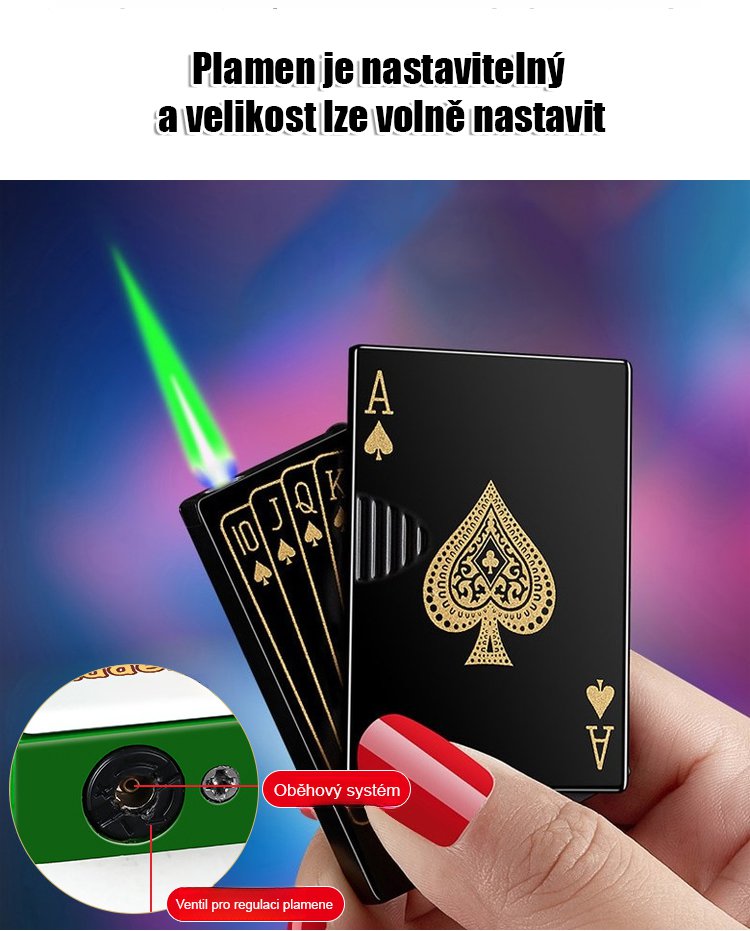 Otočný odolný proti větru zapalovač s motivem pikového esa.
